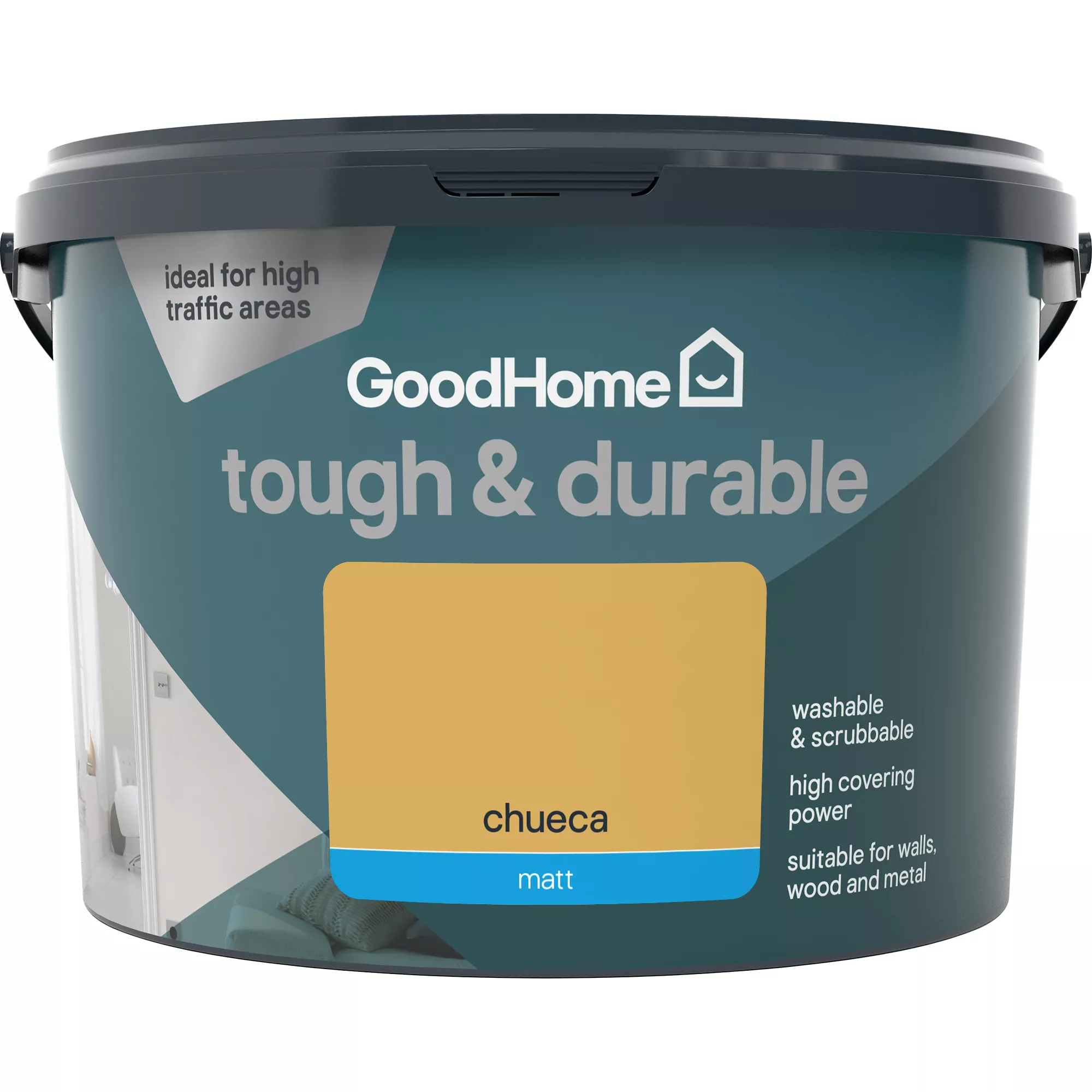 GoodHome walls and ceilings durable paint is suitable for walls, wood and metal with our toughest formulation and excellent covering power. It is extremely hard wearing so is ideal for hallways, stairwells and children’s bedrooms.