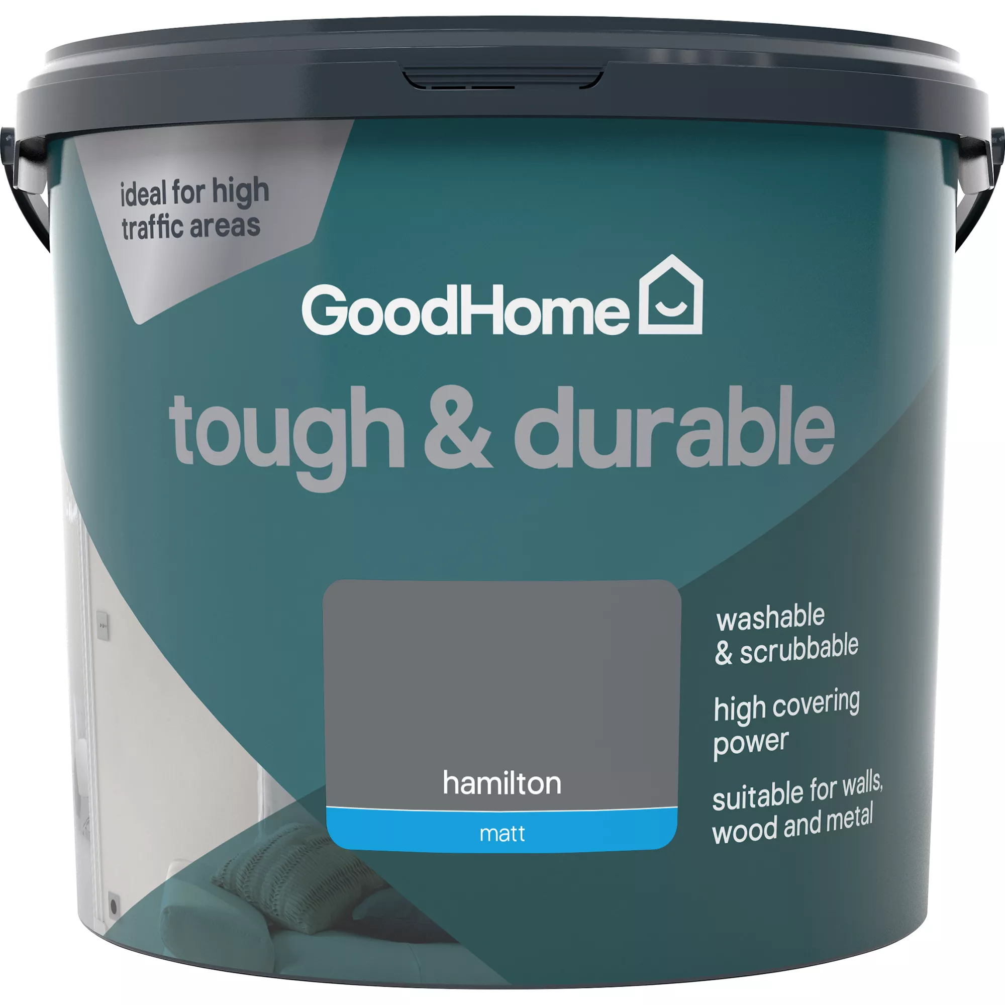 GoodHome walls and ceilings durable paint is suitable for walls, wood and metal with our toughest formulation and excellent covering power. It is extremely hard wearing so is ideal for hallways, stairwells and children’s bedrooms.