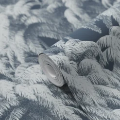 This GoodHome patterned wallpaper looks amazing on a feature wall, giving a fresh new feel to any space. Tropical leaves print on dark blue will enhance any room.