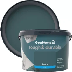 - This GoodHome Tough & Durable matt paint has a stain resistant finish and is extremely hard wearing for longer lasting colour. It is washable, scrubbable and repels liquids so splashes can be wiped off with ease, keeping your painted surfaces looking new for longer.